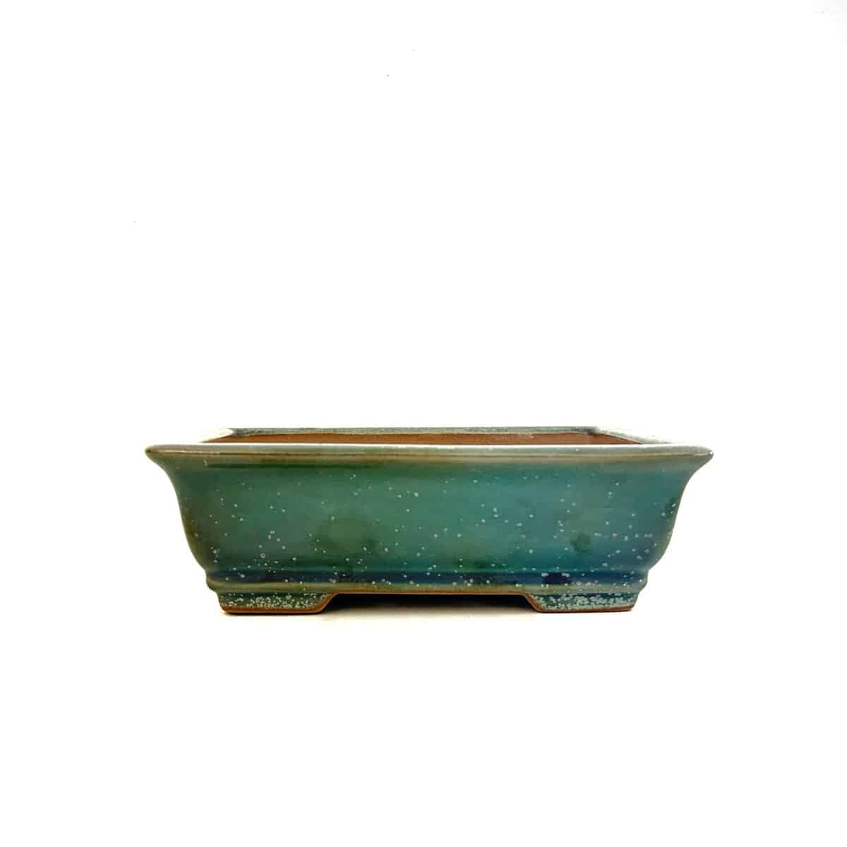 Maceta yixing de alta calidad con un esmalte verde moteado que recuerda al característico esmalte koyo, pieza rectangular de tamaño medio de alta calidad.